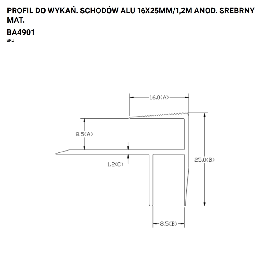 Profil schodowy aluminiowy 16×25 mm w anodowanym kolorze srebrnym matowym to praktyczne rozwiązanie do wykańczania i zabezpieczania krawędzi stopni. Dzięki trwałemu wykończeniu chroni schody przed uszkodzeniami, nadając im elegancki i nowoczesny wygląd.