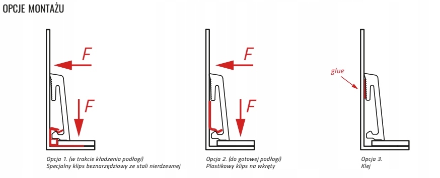 • Nasze listwy są idealnym wykończeniem dla każdej podłogi. Aby uzyskać najlepsze rezultaty, zalecamy użycie kleju dostępnego w naszej ofercie, który został specjalnie opracowany do montażu listew. Klej ten zapewnia trwałe i bezpieczne mocowanie, co gwarantuje długotrwały efekt.
