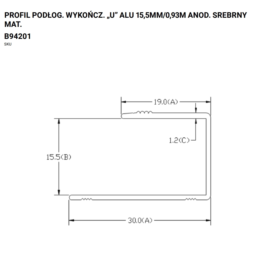 Profil zakończeniowy aluminiowy „U” o wymiarach 15,5 x 900 mm to praktyczne rozwiązanie do estetycznego wykończenia paneli podłogowych. Dzięki anodowanej powłoce w kolorze srebrnym matowym jest odporny na zarysowania, wilgoć i korozję. Idealny do domów, biur i pomieszczeń użyteczności publicznej. Profil zapewnia stabilność oraz elegancki wygląd podłogi, maskując krawędzie i chroniąc je przed uszkodzeniem.